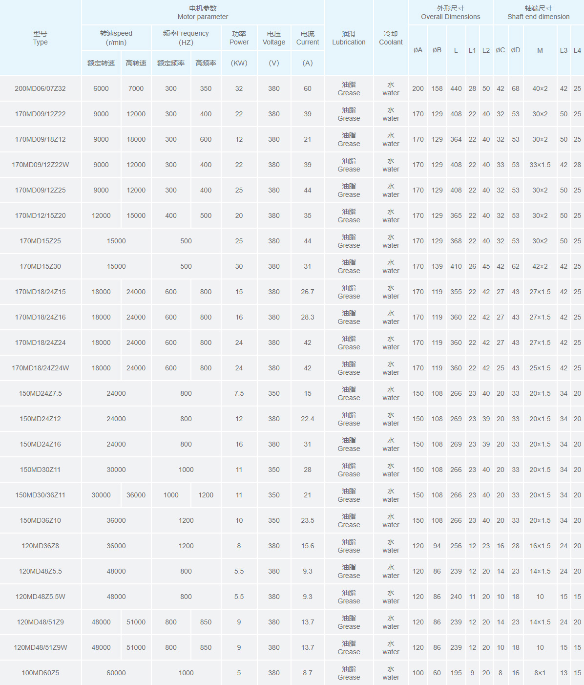 170MD09/12Z22 9000 12000 300 400 22 380 39 油脂